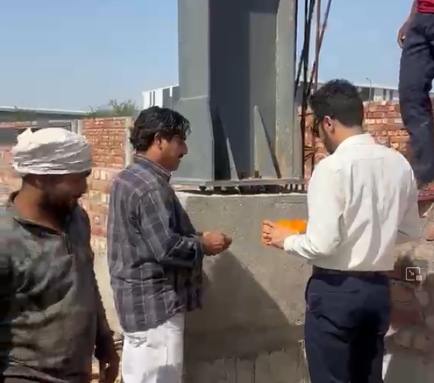 Laying the first pillar post foundation for our manufacturing facility in Reliance MET Industrial area at Jhajjar.
